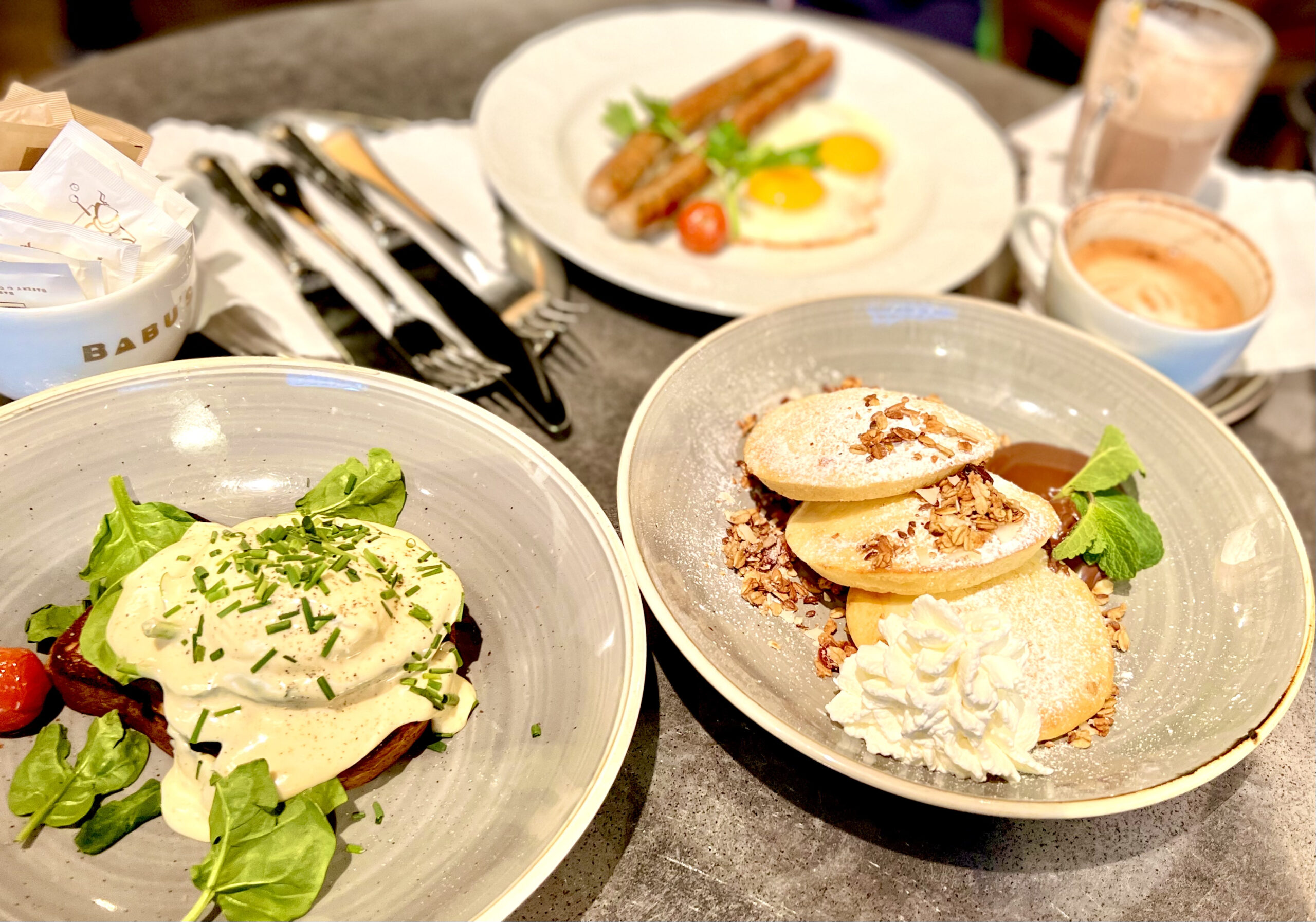 Le coffee shop, boulangerie, et brunch coffee Babu’s est un classique du brunch à Zurich, définitivement un immanquable pour les serials bruncheurs et bruncheuses. Il y a de tout et pour tous les goûts. Je trouve personnellement le service toujours un peu lent (pressés s’abstenir) mais cela vaut le détour. Il faut absolument réserver pour espérer passer un moment gourmand ici. On adore le décor un peu comme chez mamie avec des plats servis dans une vaisselle à l’ancienne et des brunchs présentés sur des plateaux à étages vintage hyper choux! Les pancakes et les cinamonrolls sont incroyables! C’est assez cher comme tout à Zurich.