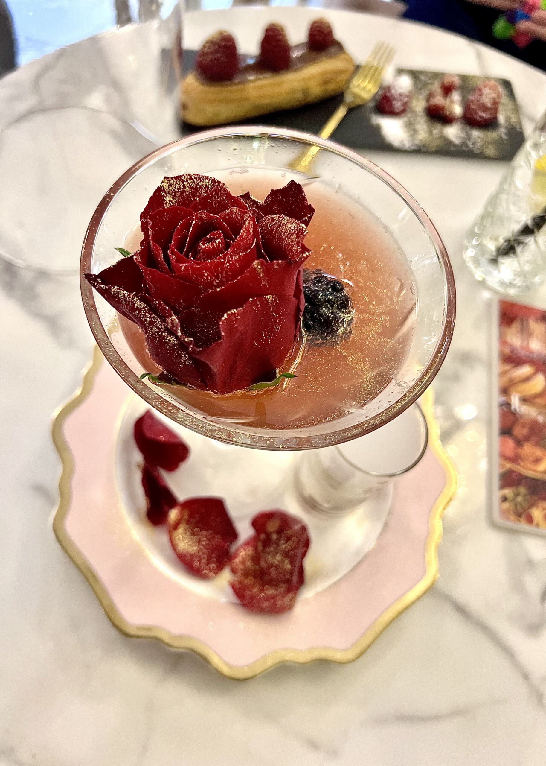 Avec Boubou aka Martinou aka baby choisistonresto numéro 1 (qui a bien grandi), nous avons choisis le brunch oriental qui contraste un peu avec le côté full pink de l’endroit. Pour la photo (j’avoueeeeee), je n’ai cependant pas pu résister au donut super rose et gold et au cocktail version de la belle et la bête: so so girly comme on adore!