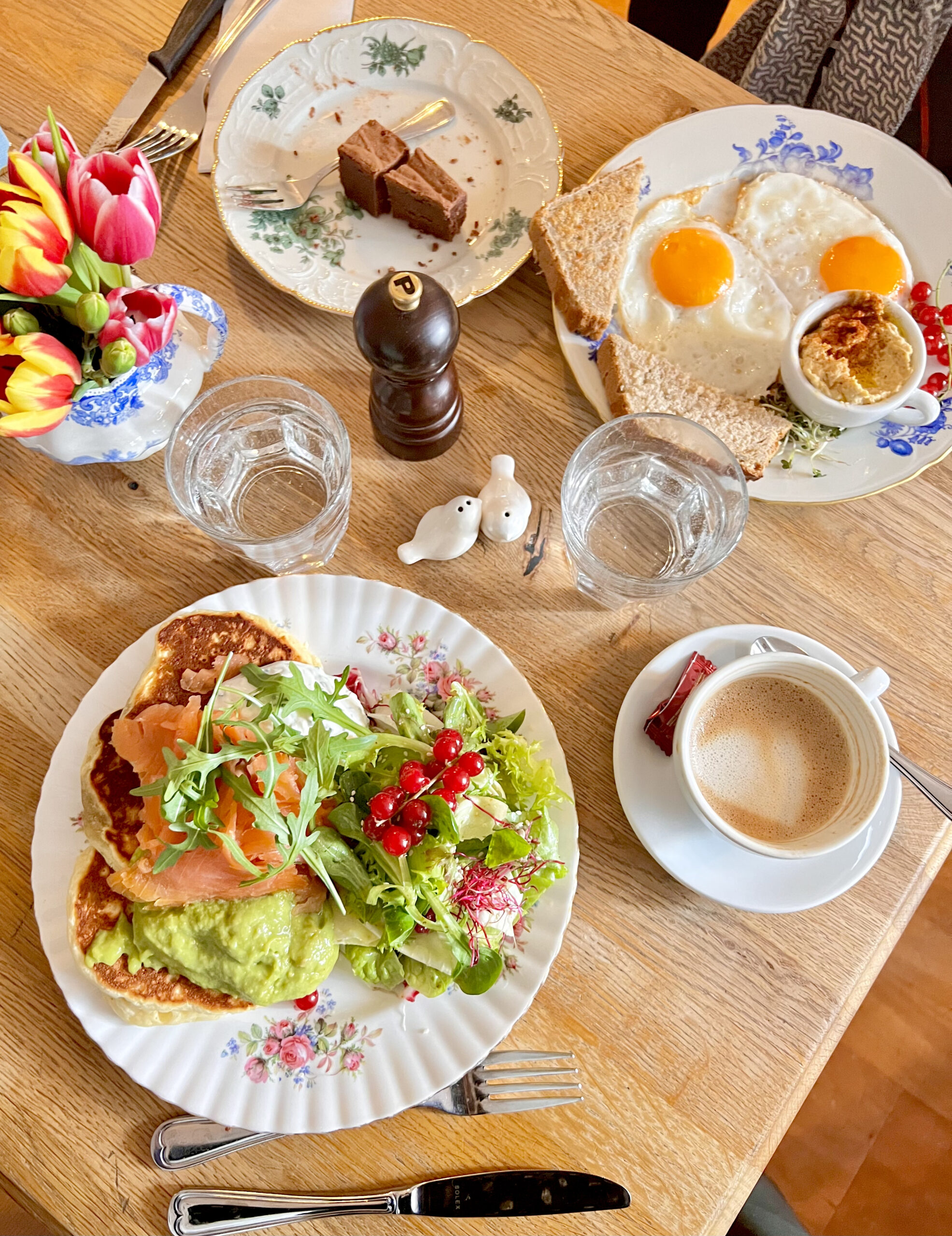 Je suis définitivement une bruncheuse (et pas que du dimanche – uhuh je sais je suis super drôle ^^) Mon goal en vacances consiste généralement à passer de brunch en brunch. J’ai découvert l’an dernier cette petite adresse: Kafi Dihei. Celle-ci est un peu excentrée mais accessible en tram (10 min environ du centre). On savoure le calme de ce quartier résidentiel, on contemple la jolie terrasse au mobilier coloré doucement éclairée par les rayons du soleil matinal. À l’intérieur, le décor vintage bricbroc très « granny style » apporte une chaleur et de la convivialité à l’endroit. Les serveuses qui s’expriment parfaitement en anglais sont adorables et les propositions culinaires variées, délicieuses et abordables (pour Zürich).