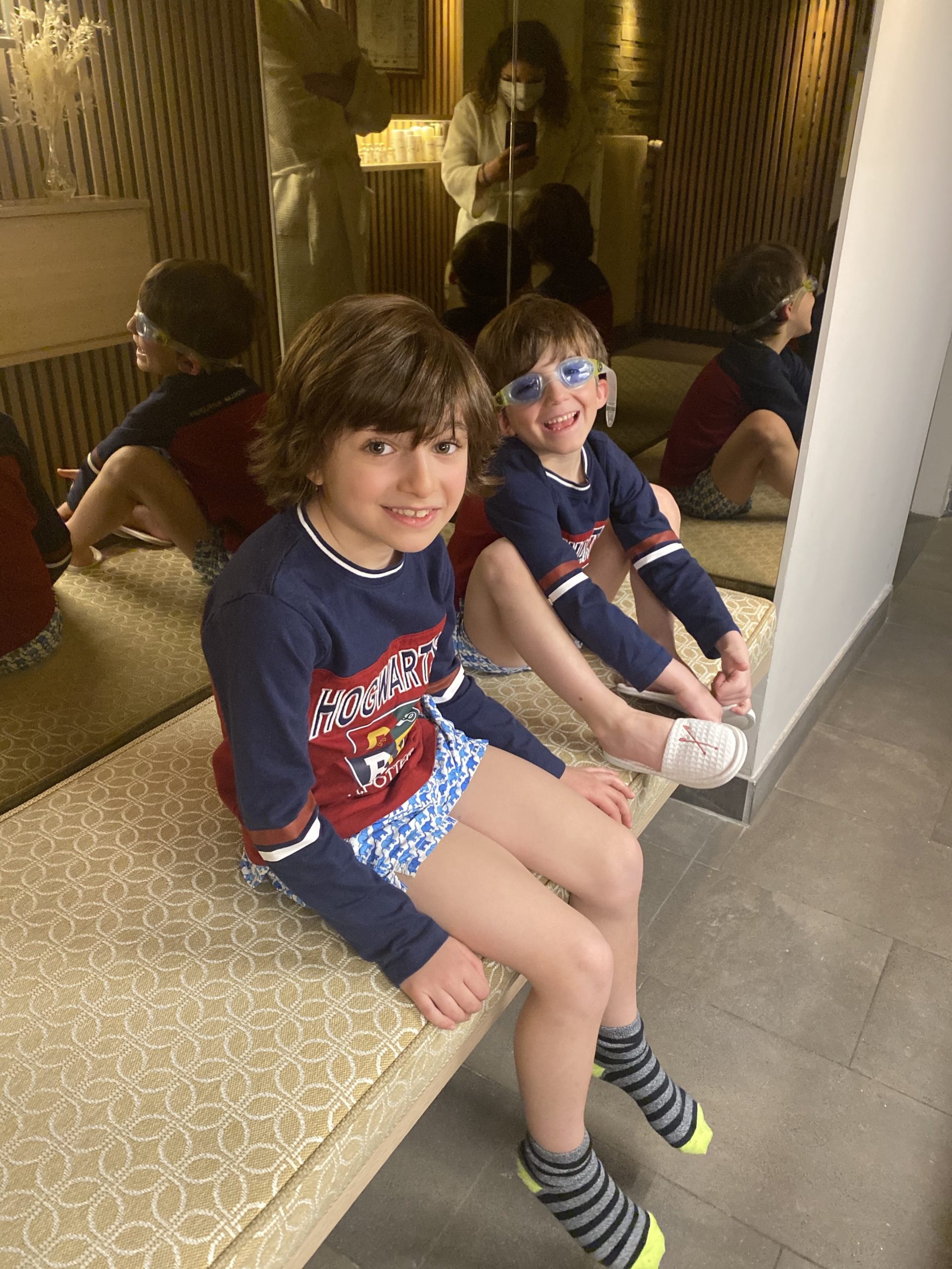 Les enfants ont aussi eu droit à un petit kit de bienvenue qui fut fort apprécié et ils ont beaucoup apprécié les détails vintage de l’hôtel: les anciens téléphones fixes en particulier, une vraie curiosité pour des enfants nés après 2010…). Nous avons aussi pu profiter en famille du Jacuzzi de l’hôtel. Pour des moments plus festifs, des 17h00, vous pouvez commander depuis le jacuzzi vos cocktails au bar juxtaposé: à faire!